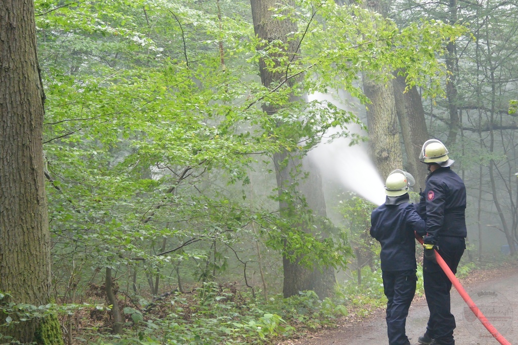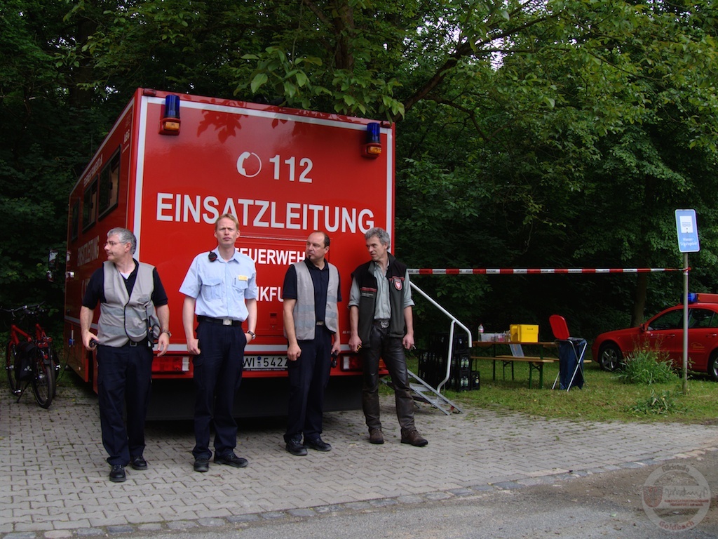 Die Schadendarstellung (Kräfte der Freiwilligen Feuerwehr Frankfurt-Niederrad) sorgten dabei für ein möglichst realistisches Szenario mit Rauch und Feuer, ohne wirklich den Wald zu gefährden. Die Koordination wurde über die mobile Technische Leitstelle gemanagt, die von der IUK-Gruppe der Feuerwehr Frankfurt am Main betrieben wurde. Führungsdienste der Berufsfeuerwehr unterstützen bzw. leiteten die gesamte Übung. Nach ca. 3 Stunden war das Ziel erreicht und die Übung beendet.(ck/heu)