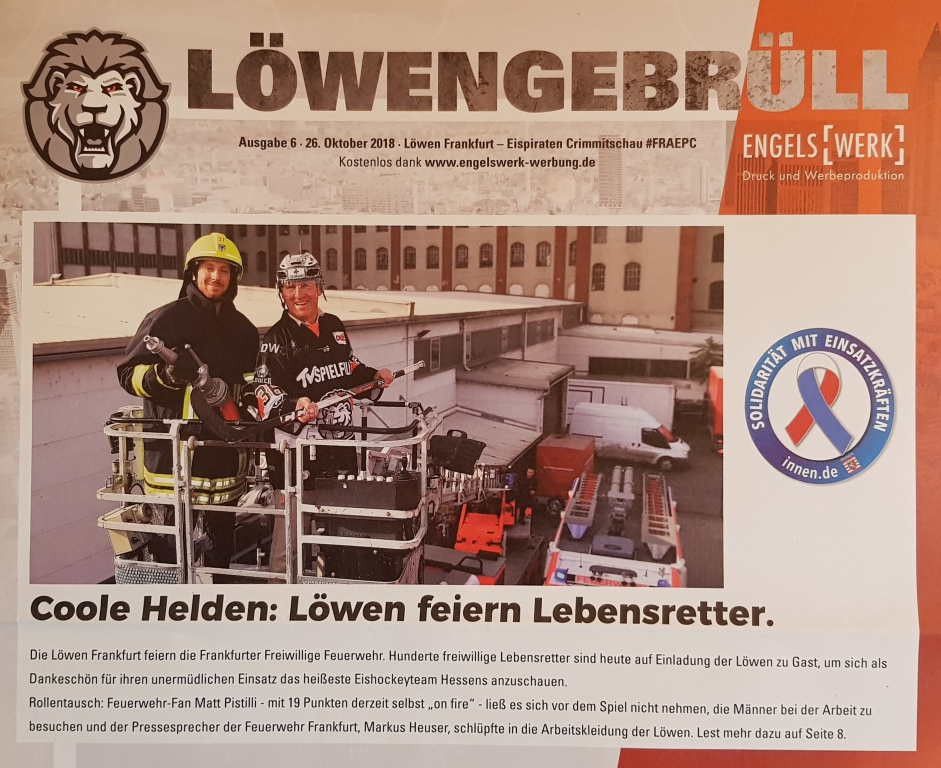 Der Kreisfeuerwehrverband Frankfurt am Main bedankt sich auch an dieser Stelle ausdrücklich und sehr herzlich bei folgenden Initiatoren auf Seiten der Löwen Frankfurt: